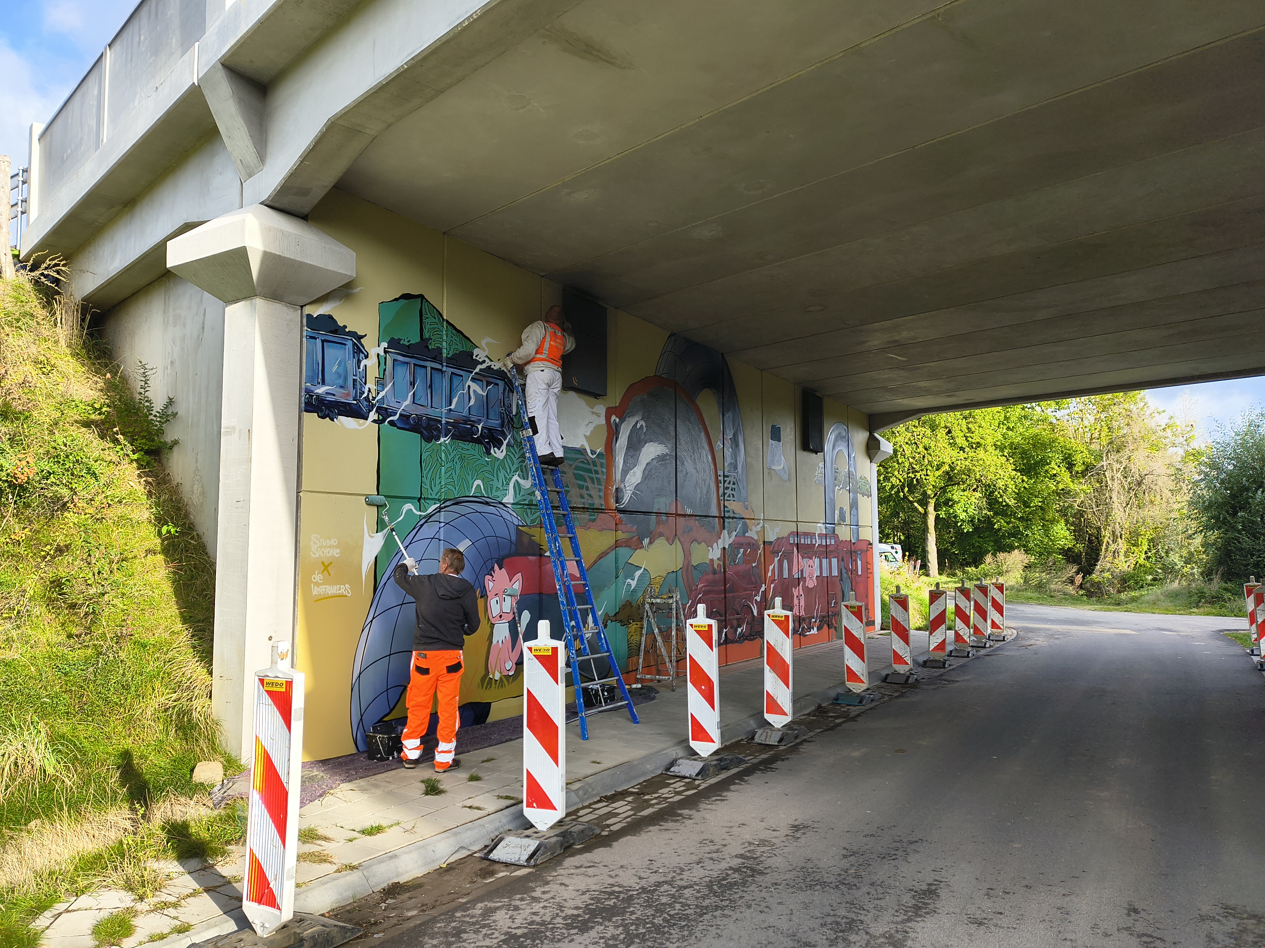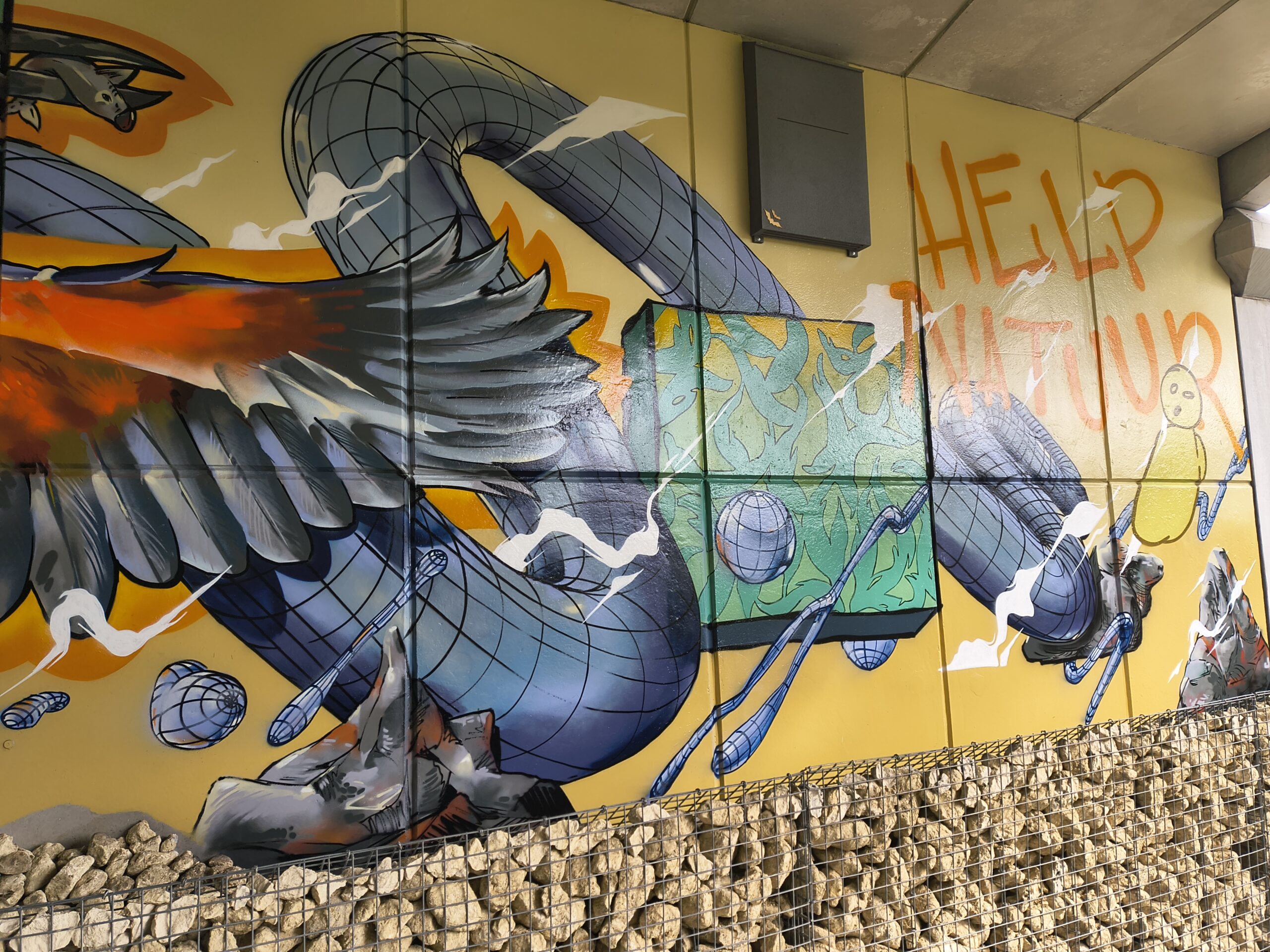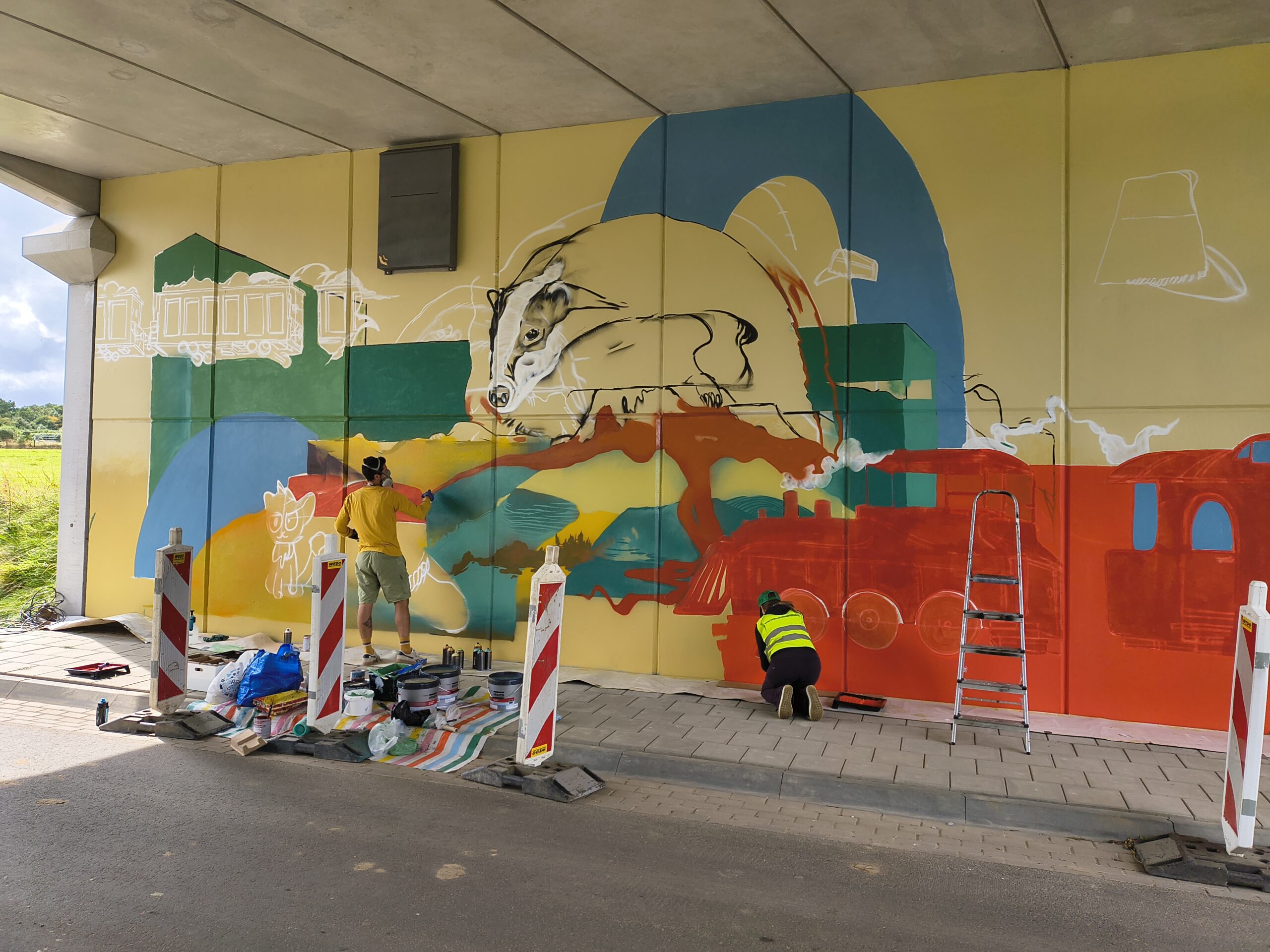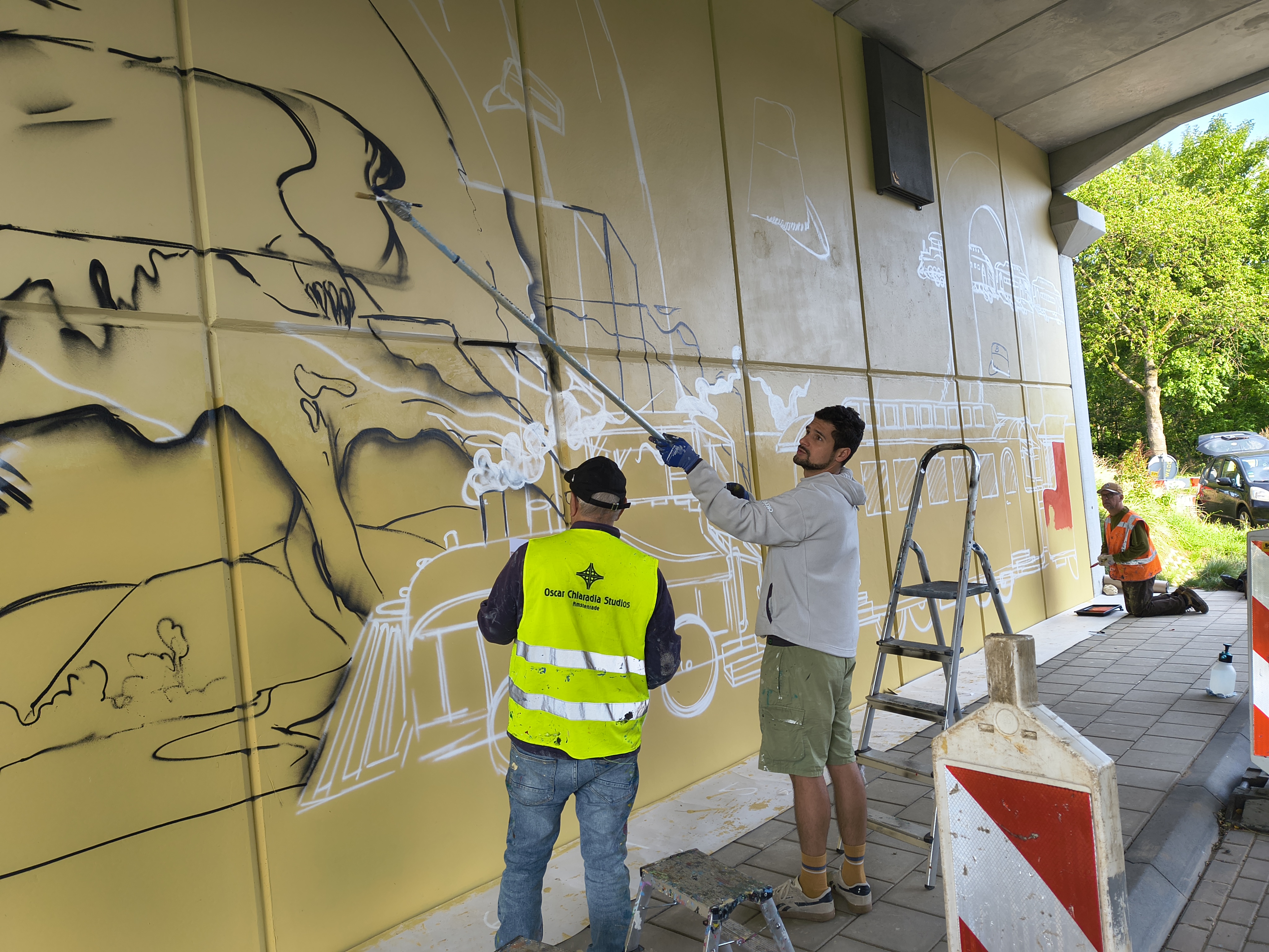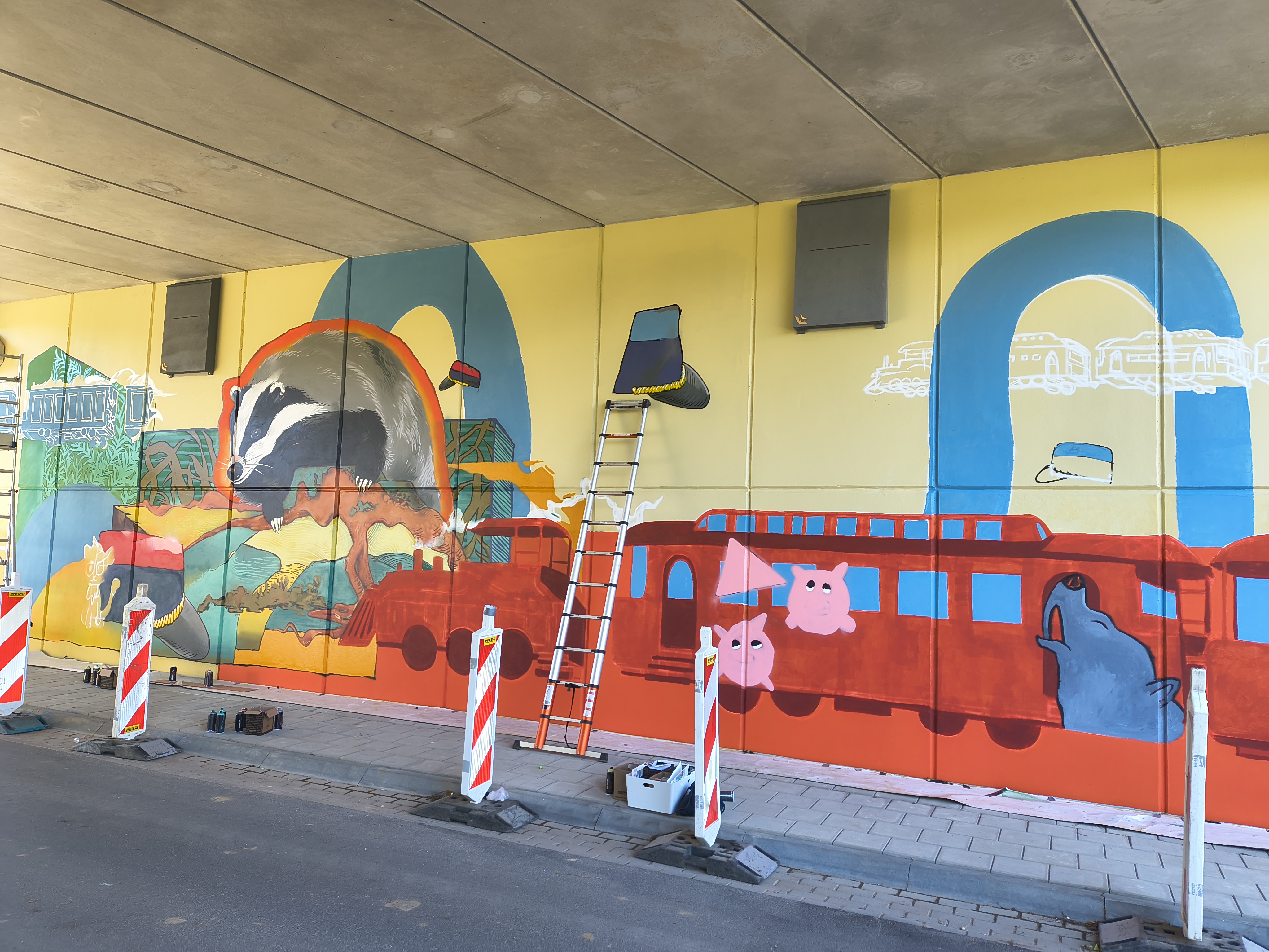 De tunnel onder het viaduct aan de Fommestraat heeft een nieuw en kleurrijk gezicht gekregen. Waar vroeger de oude tramlijn liep, zie je nu een muurschildering. Kunst, natuur en geschiedenis komen op deze plek mooi samen. Jeugd uit de omgeving maakte zelf tekeningen en teksten. Deze zijn door De Verfraaiers en Studio Skyone samengebracht tot één groot kunstwerk. Hun boodschap is duidelijk: ‘Help Natuur!’. Deze woorden staan in hun eigen handschrift op de muur.