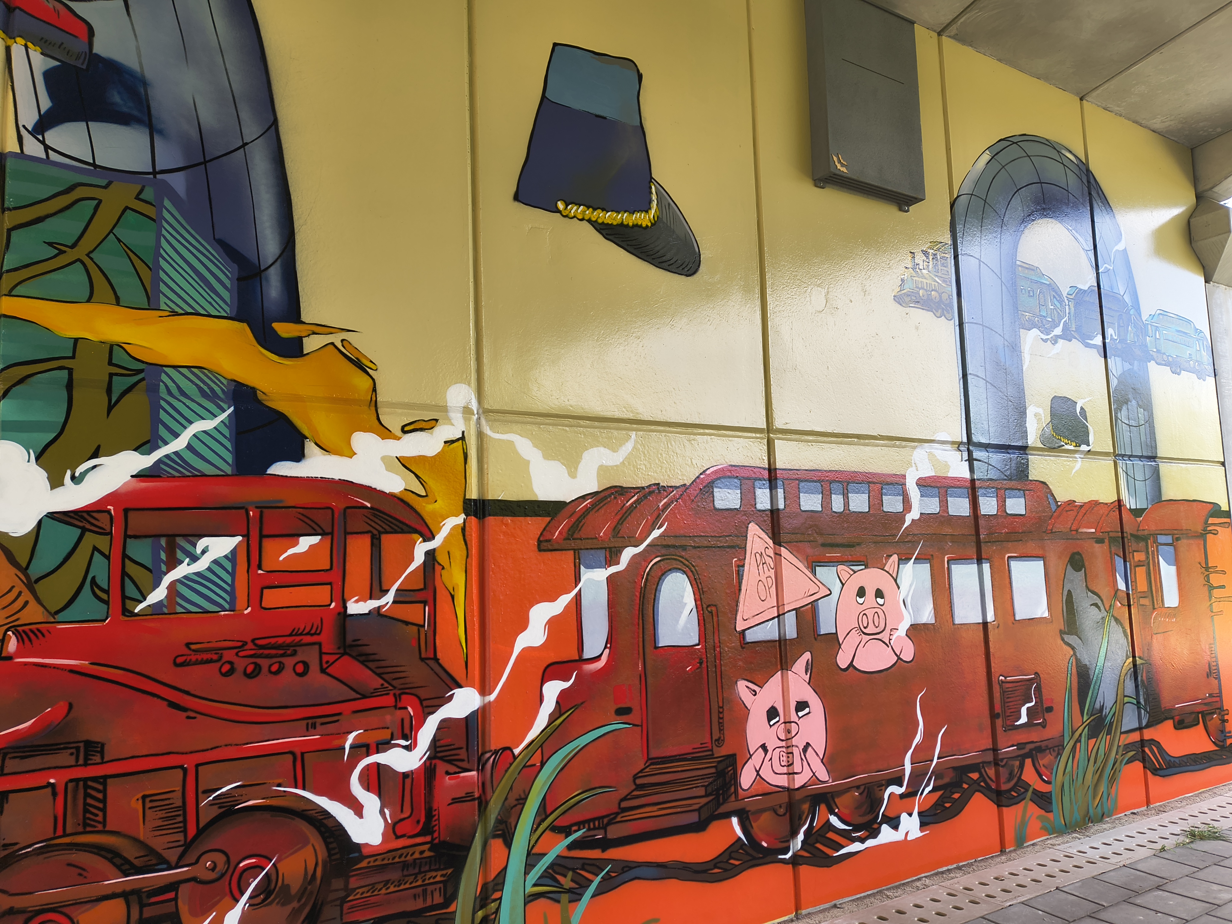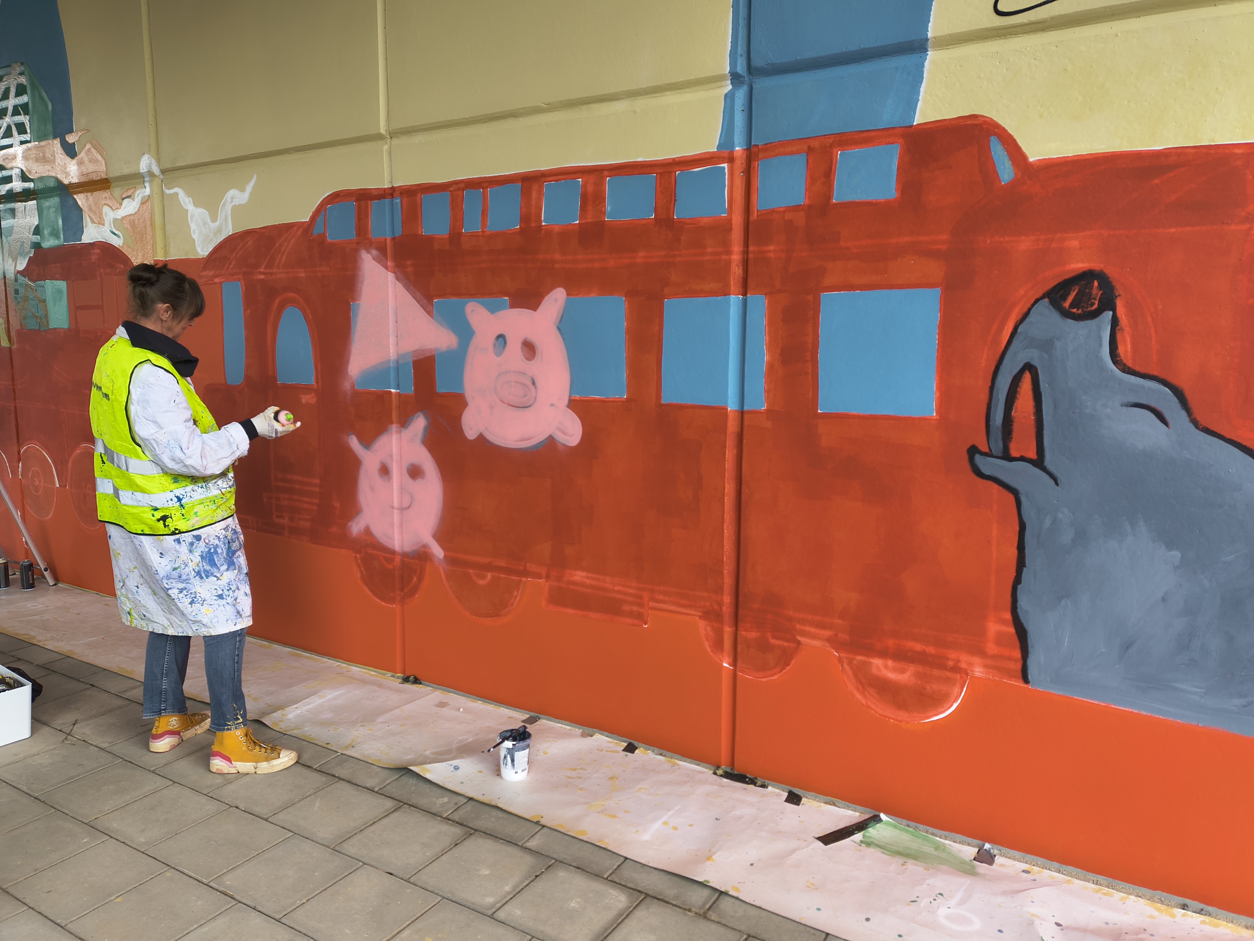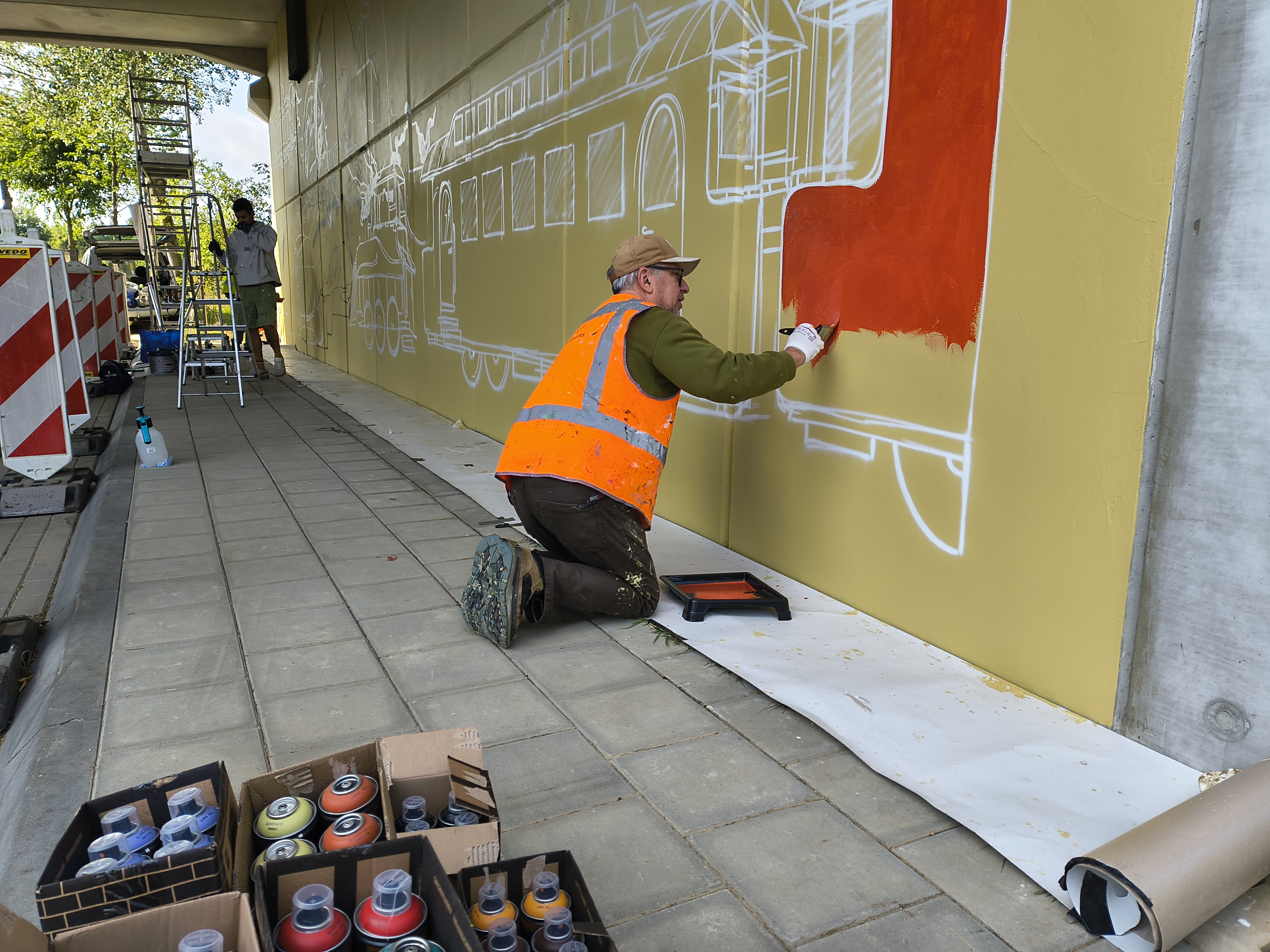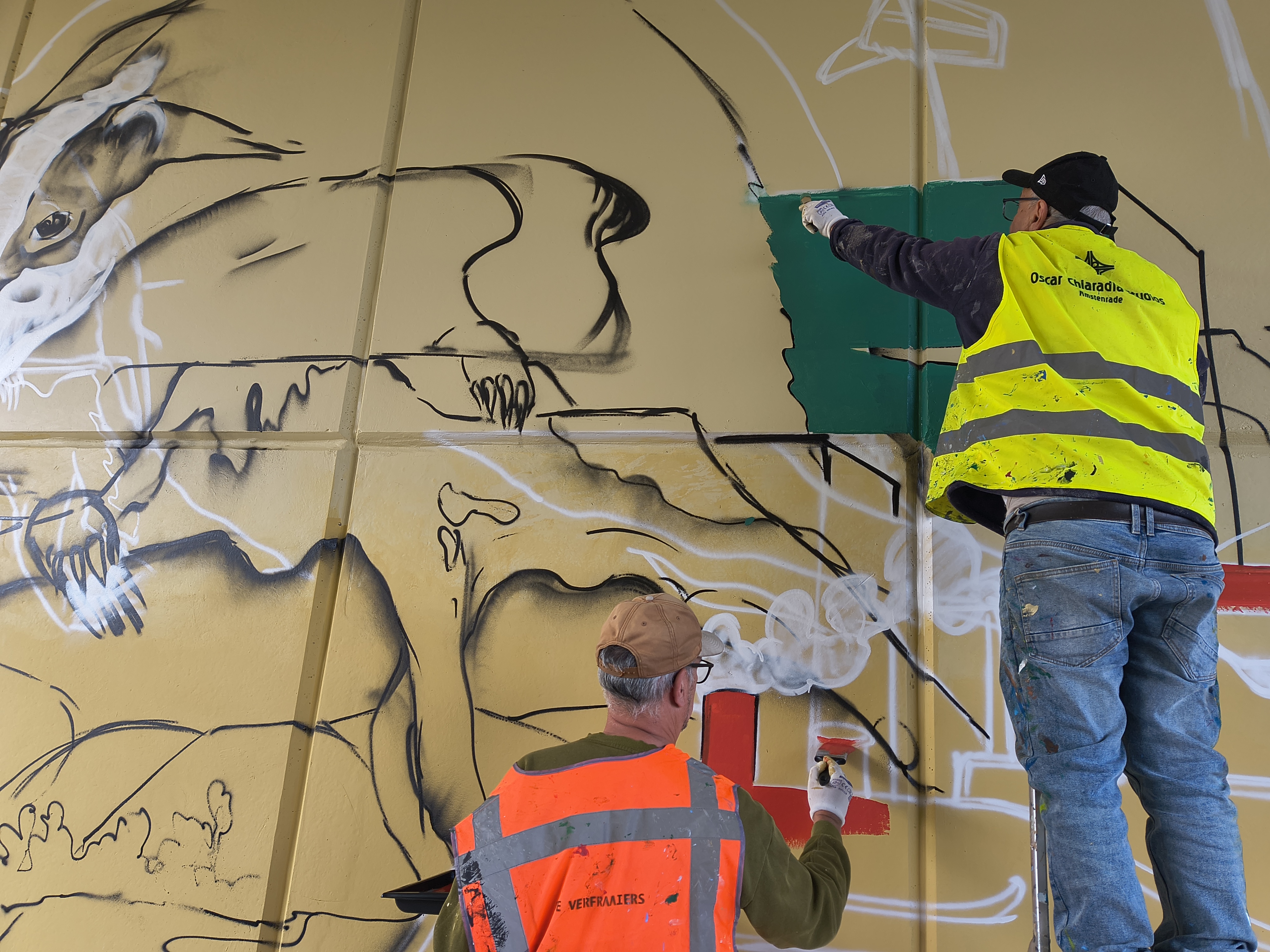 De tunnel onder het viaduct aan de Fommestraat heeft een nieuw en kleurrijk gezicht gekregen. Waar vroeger de oude tramlijn liep, zie je nu een muurschildering. Kunst, natuur en geschiedenis komen op deze plek mooi samen. Jeugd uit de omgeving maakte zelf tekeningen en teksten. Deze zijn door De Verfraaiers en Studio Skyone samengebracht tot één groot kunstwerk. Hun boodschap is duidelijk: ‘Help Natuur!’. Deze woorden staan in hun eigen handschrift op de muur.