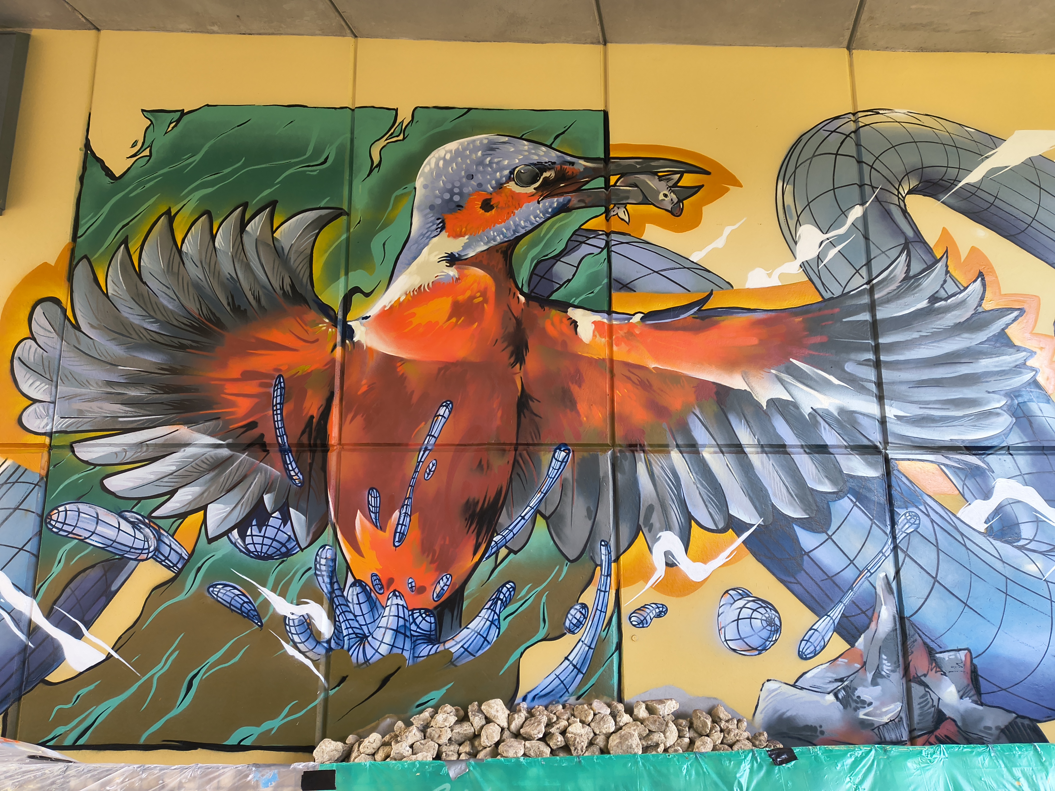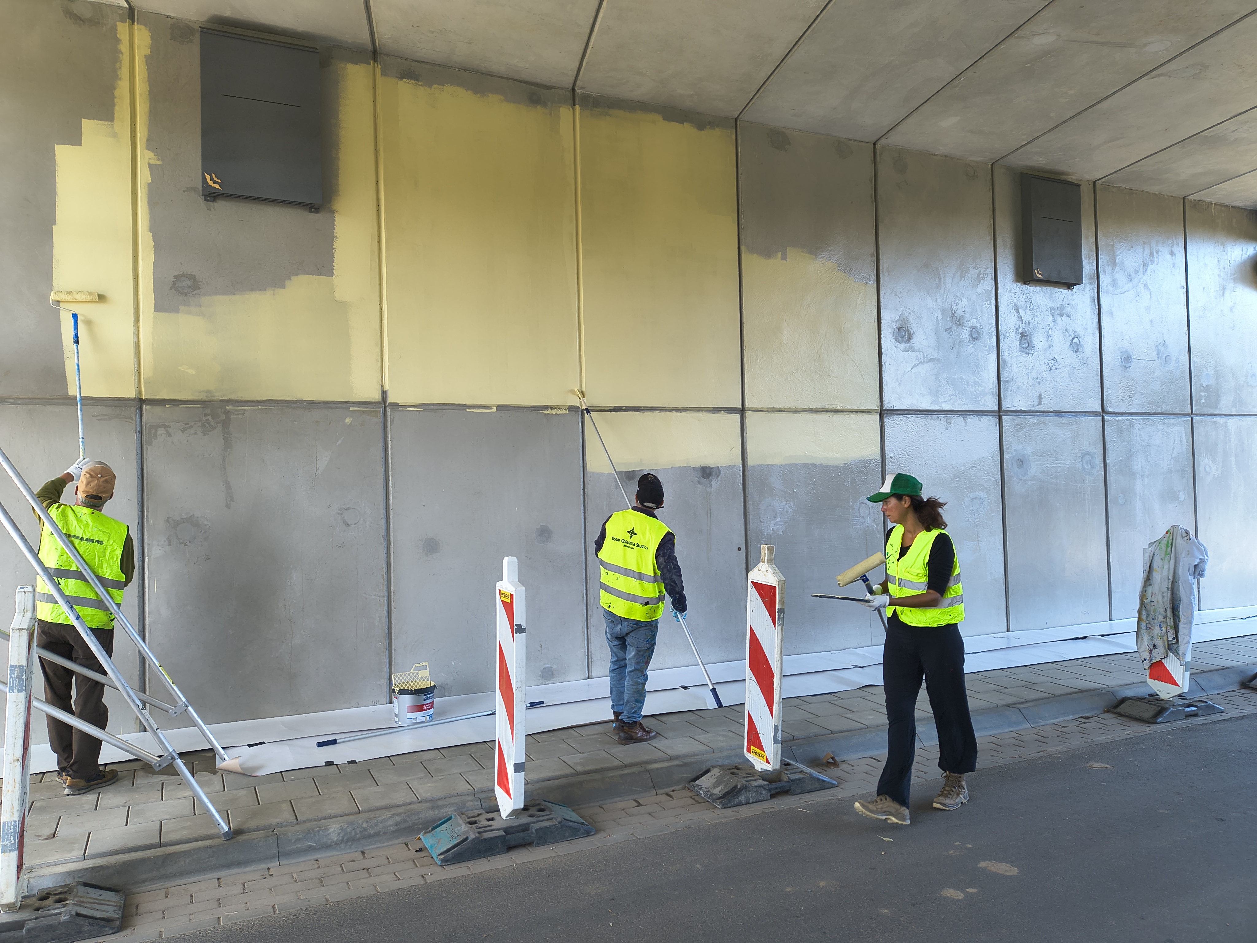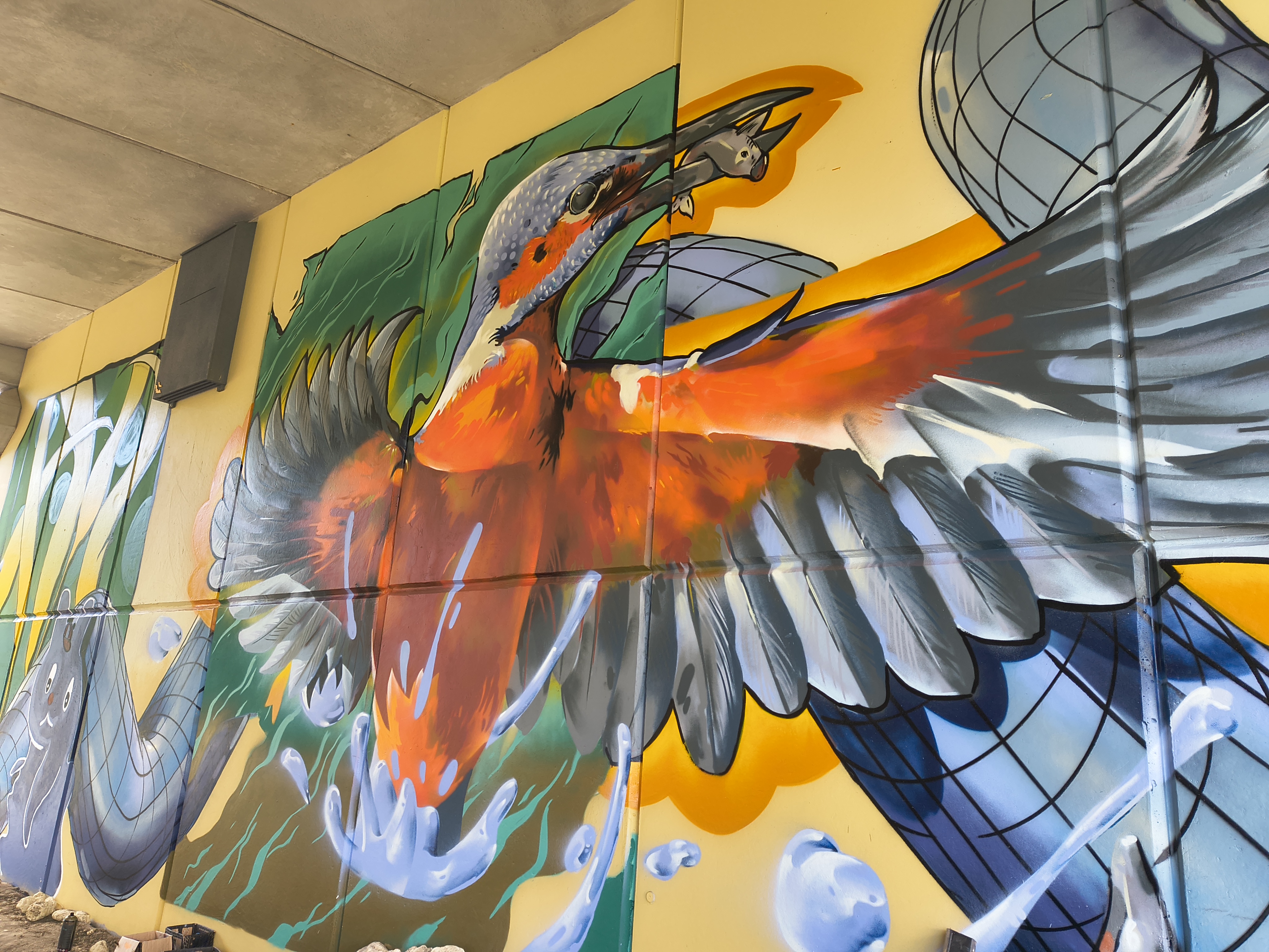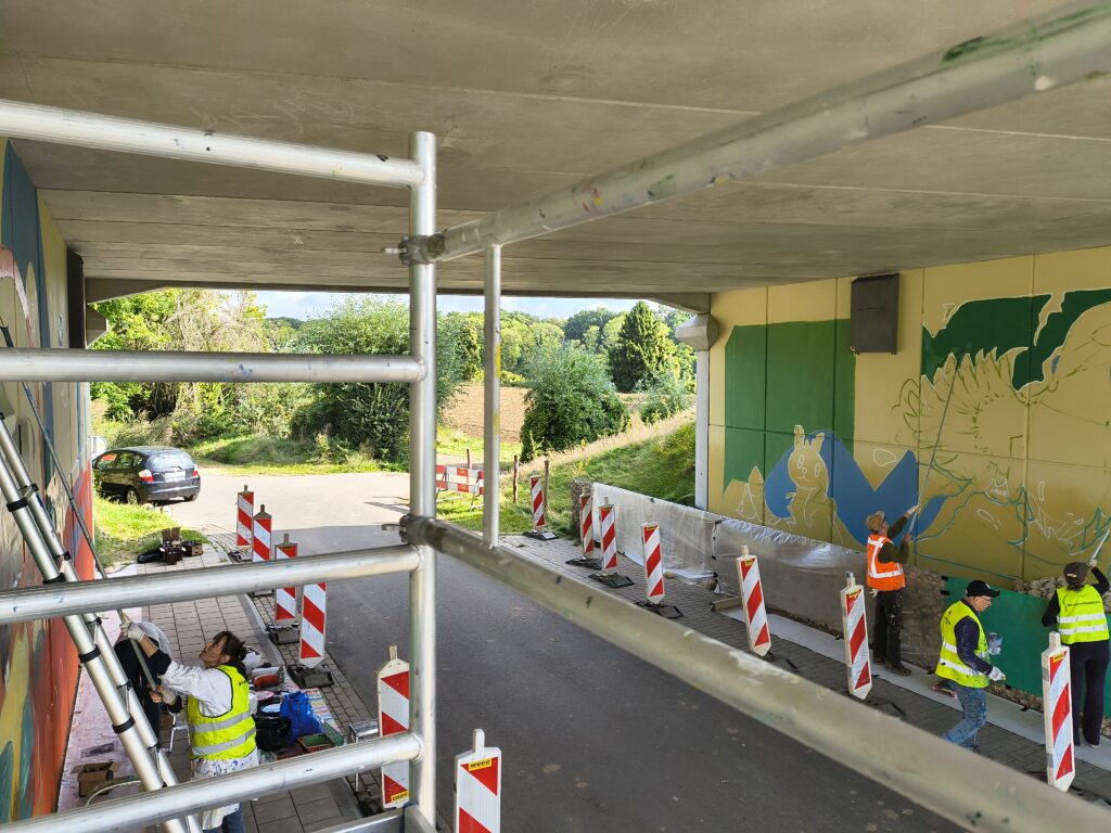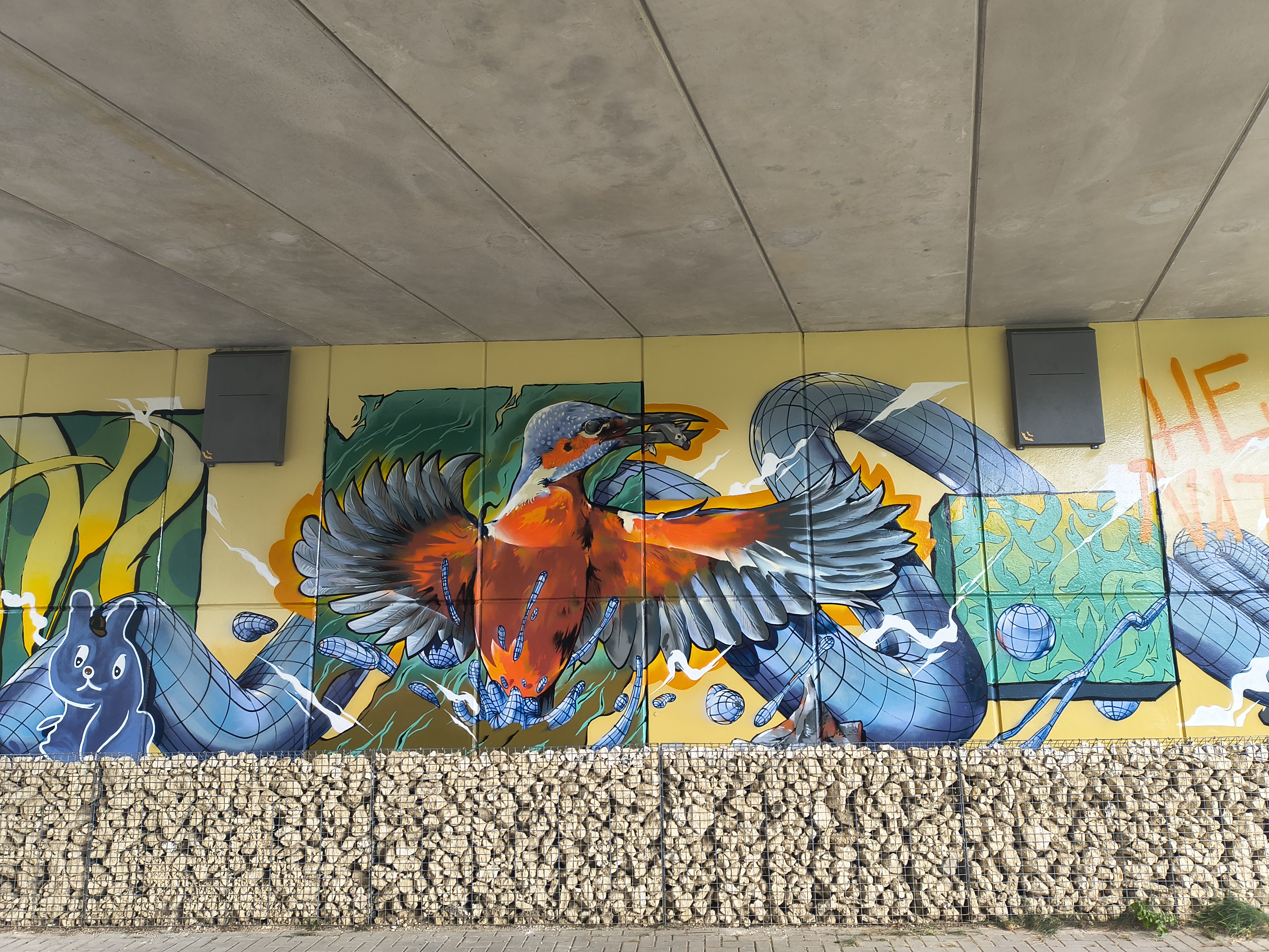 De tunnel onder het viaduct aan de Fommestraat heeft een nieuw en kleurrijk gezicht gekregen. Waar vroeger de oude tramlijn liep, zie je nu een muurschildering. Kunst, natuur en geschiedenis komen op deze plek mooi samen. Jeugd uit de omgeving maakte zelf tekeningen en teksten. Deze zijn door De Verfraaiers en Studio Skyone samengebracht tot één groot kunstwerk. Hun boodschap is duidelijk: ‘Help Natuur!’. Deze woorden staan in hun eigen handschrift op de muur.